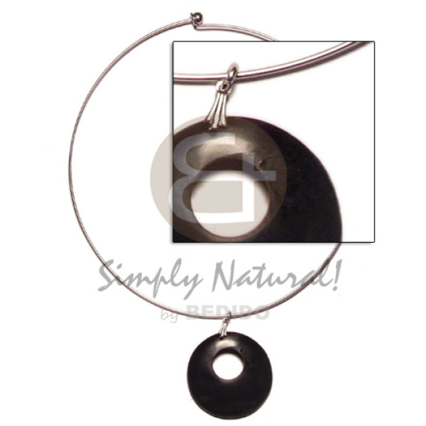 2-3mm coco black heishe bone and horn beads and 45mm carabao horn ring pendant..