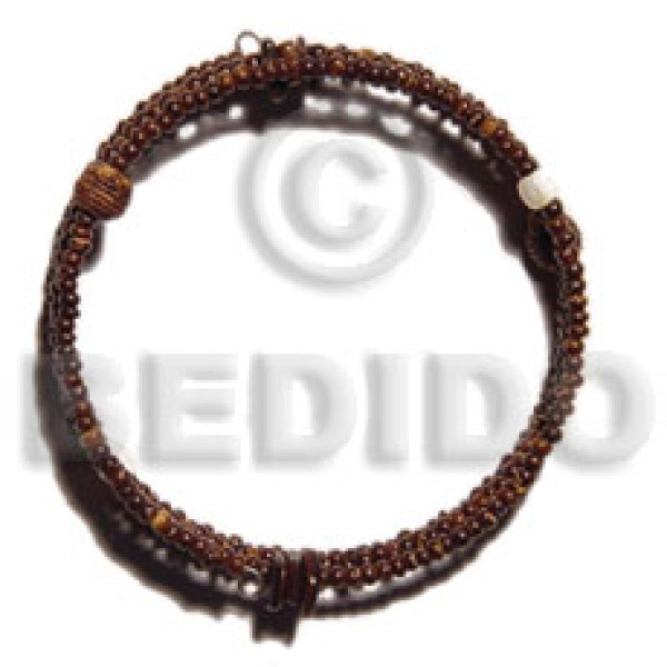 2-3mm coco Pokalet. nat. brown hoop wire bracelet/adjustable shell & wood beads..