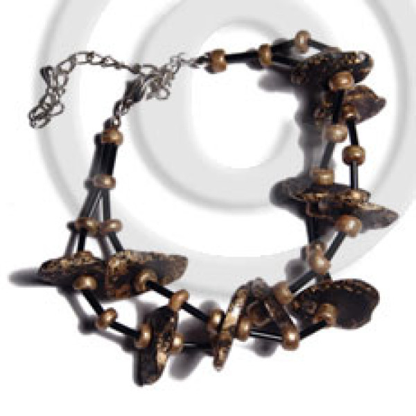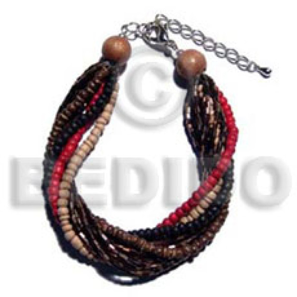 twisted 4 rows 2-3mm coco Pokalet - nat. white/nat brown/red/black combination 5 rows brown cut bea..