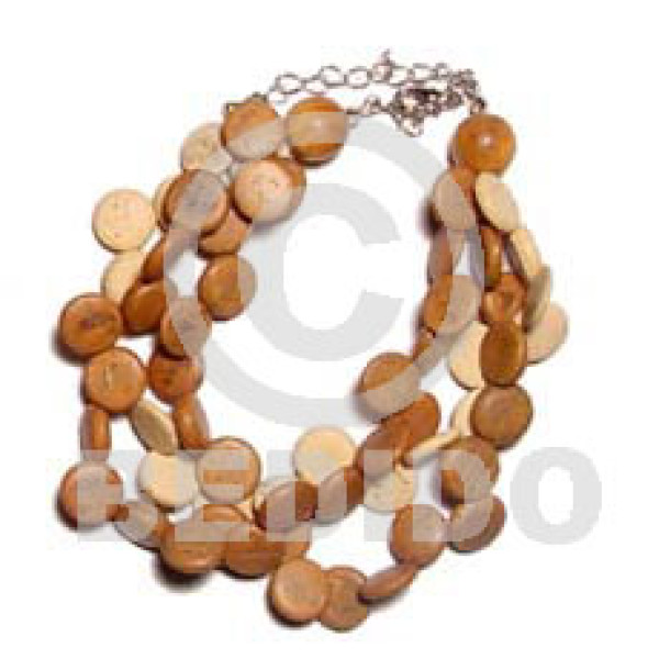 3 rows sidedrill coco nat./bleach/wood bead bleach/wood ricebeads and acrylic crystals..