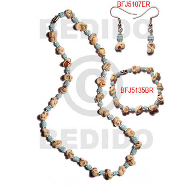 2-3mm coco Pokalet. nat. brown white clam alt. and coco flower..