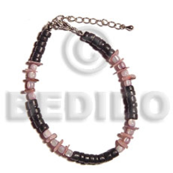 2-3mm coco Pokalet. black hoop wire bracelet/adjustable shell & buri beads..