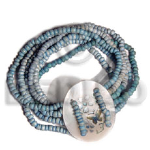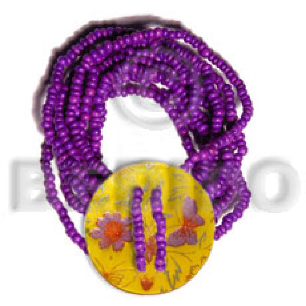 10 layers elastic violet 2-3mm coco Pokalet. 35mm round handpainted MOP..