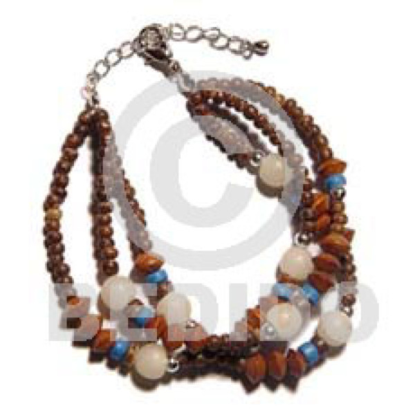 3 rows coco Pokalet. nat. brown buri seed, palmwood & silver metal ball..