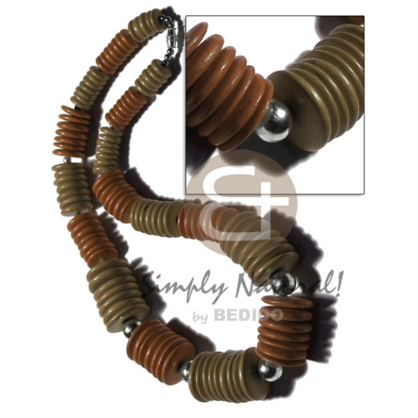 4-5mm coco heishe black slidecut nat. wood beads and horn beads accent..