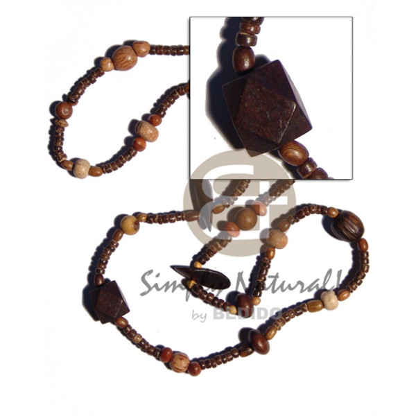 "kalandrakas"- asstd. wood beads per necklace when ordered in 4-5mm coco pokalet nat. brown neckline..