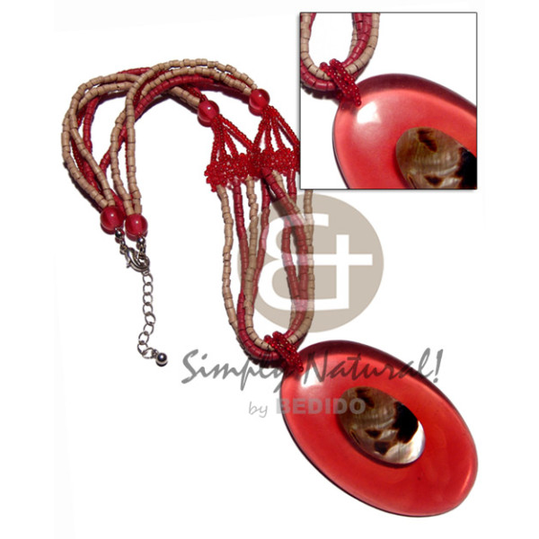 4 rows 2-3mm maroon coco heishe and nat. white combination 35mmx20mm oval blacklip tiger laminated ..