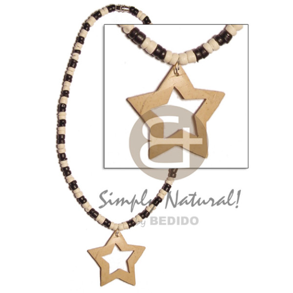 2-3mm coco heishe nat. /2-3 coco pokalet brown alt. coco two face pyramid pendant..
