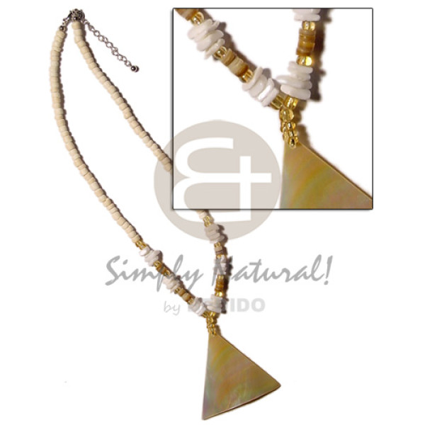 2-3mm coco heishe nat. /2-3 coco pokalet brown alt. coco two face pyramid pendant..