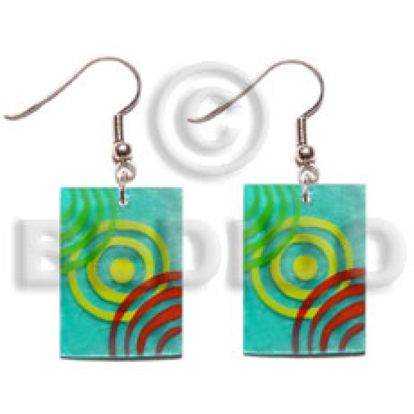 dangling 35mmx30mm rectangular kabibe shell, multicolored, handpainted, embellished embossed metall..