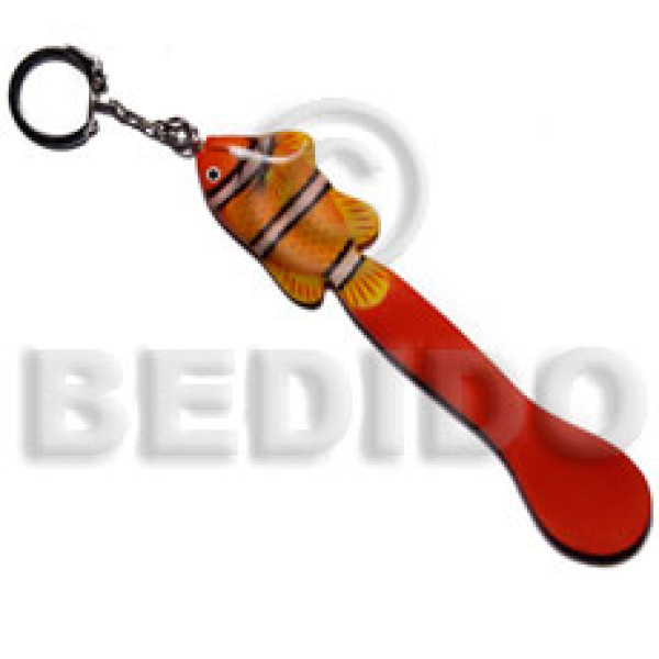 Fish handpainted wood keychain 105mmx40mm