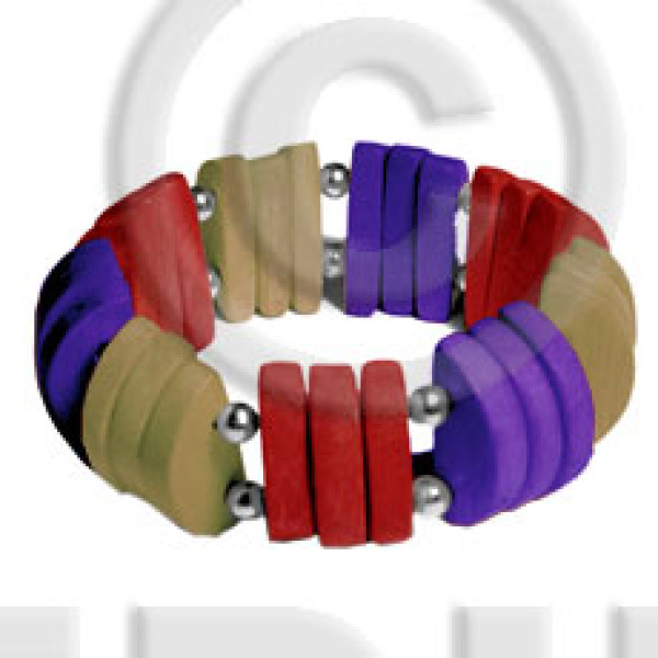 natural white wood dark red/dark blue/dark mustard combination elastic bangle..