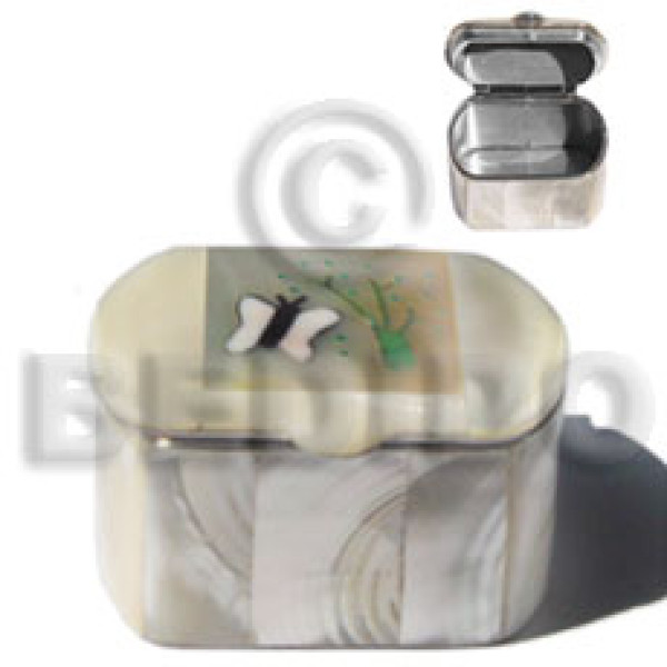stainless square metal casing inlaid troca shell / turtle design from asstd. shells..