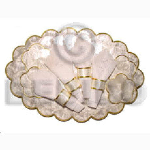 sinamay placemats brass trimmed capiz coaster, cloth table napkins, nautilus shell napkin holders /..