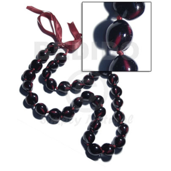 32 pcs. of kukui nuts in high polished paint gloss marbleized red/black combination in matching rib..
