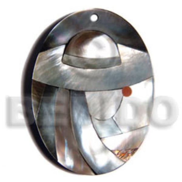 45mmx35mm laminated oval paua/blacklip shell combination 5mm black resin backing..