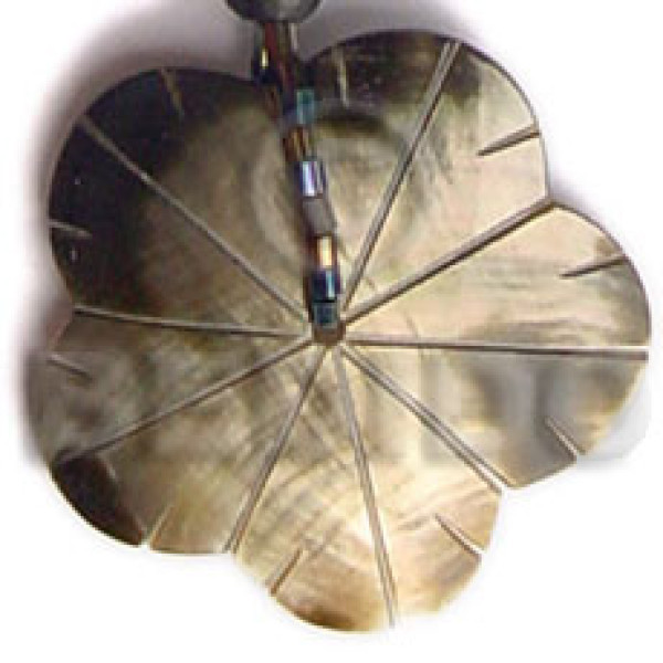 52mmx25mm cracking laminated brownlip/MOP shell inlaid metal and resin backing pendant..