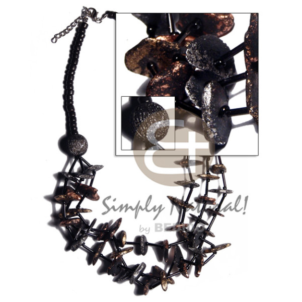 3 rows dangling 5 pcs. graduated laminated eggshell shell bars resin backing ( longest-45mmx10mm to..