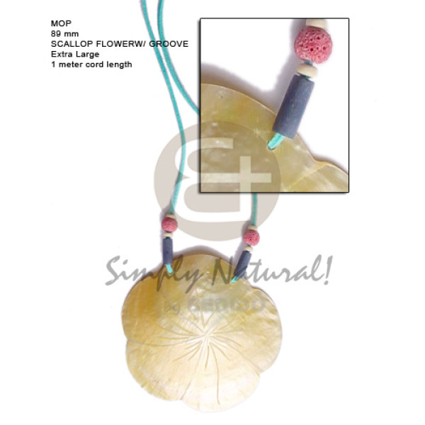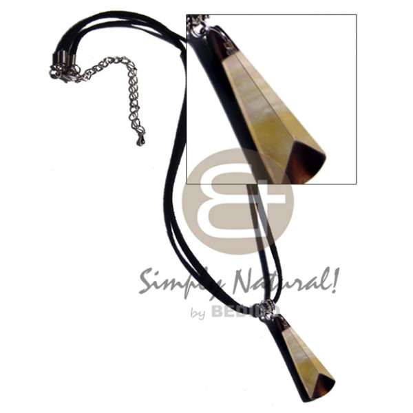 50mmx18mm triangular laminated MOP pendant backing on 3 rows leather thong..