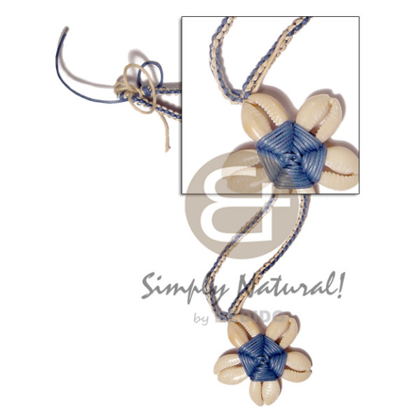 braided flat abaca choker 5 pcs flower sigay/cowrie shells and green mongo shells accent / 16in. ..