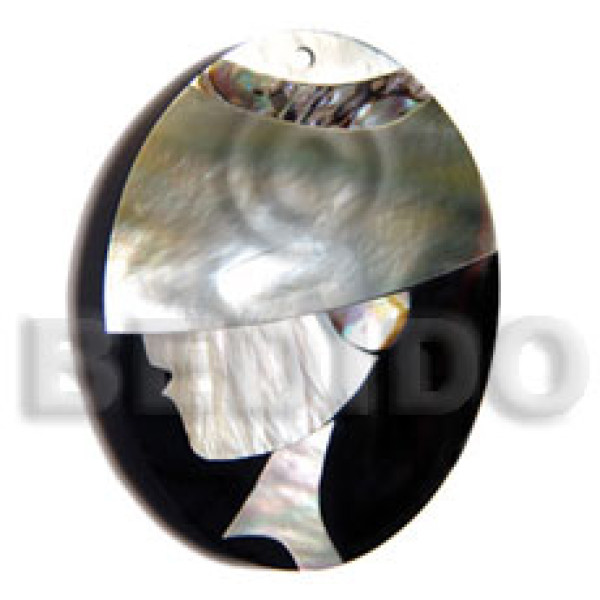 olive green macrame cord and 50mmx38mm oval pendant /elegant hat lady delicately etched in shells - ..