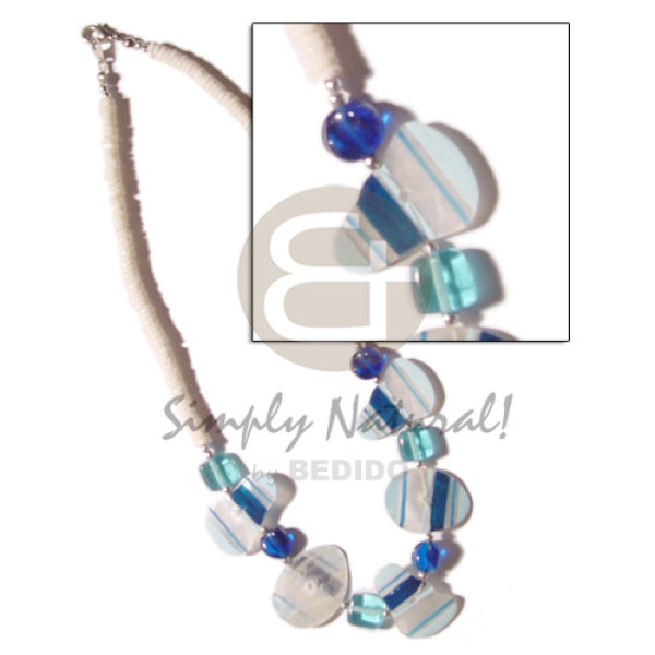 painted striped capiz & crystals accent in 4-5mm white clam heishe..