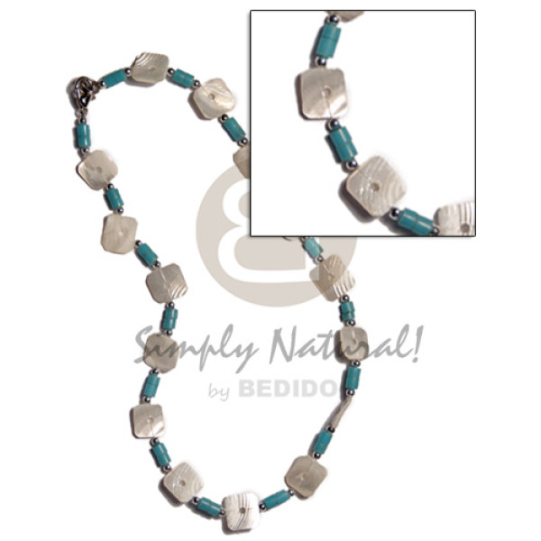 cleopatra -choker/ 4 pcs. 30mmx30mm rectangular hammershell dangling glass beads and hammershell nu..