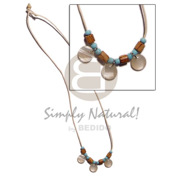 tassled 50mm donut coco chips in resin texture wood bead combination and 2 layers wax cord neckline..