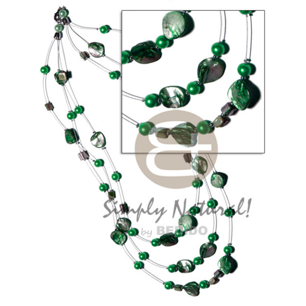 6mm /8mm bayong wood beads crazy cut and troca beads combination / 16in / barrel lock..
