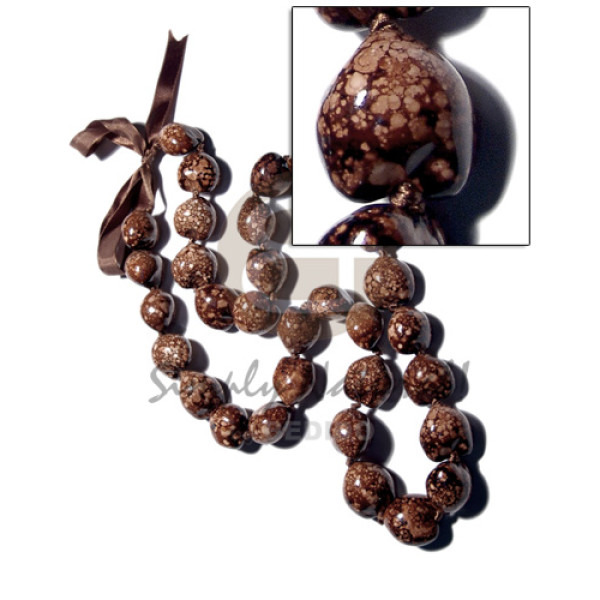 20mm/25mm round wrapped wood beads , brown kukui nuts and wood beads combination in black wax cord..