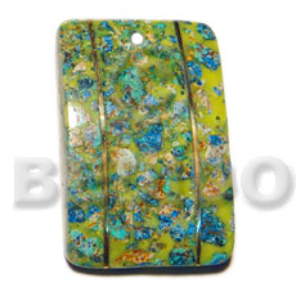 flat square black resin 25mmx25mm laminated paua/hammershell pendant..