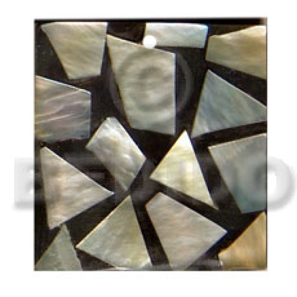 square 50mm flat resin laminated diagonal cut blacklip/kabibe shell combination..