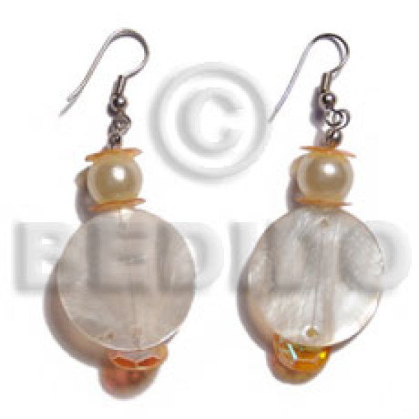 orange 3 layer wax cord buri seeds, shell & white rose beads combination leather flower accent..