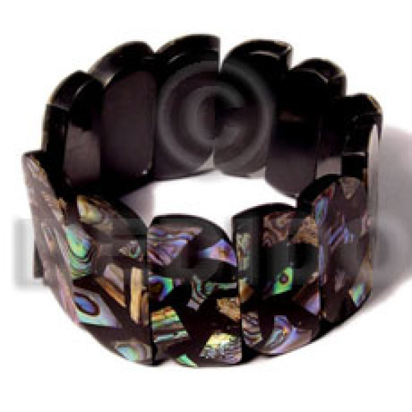 35mmx15mm paua abalone crazy cut in black resin elastic bangle..