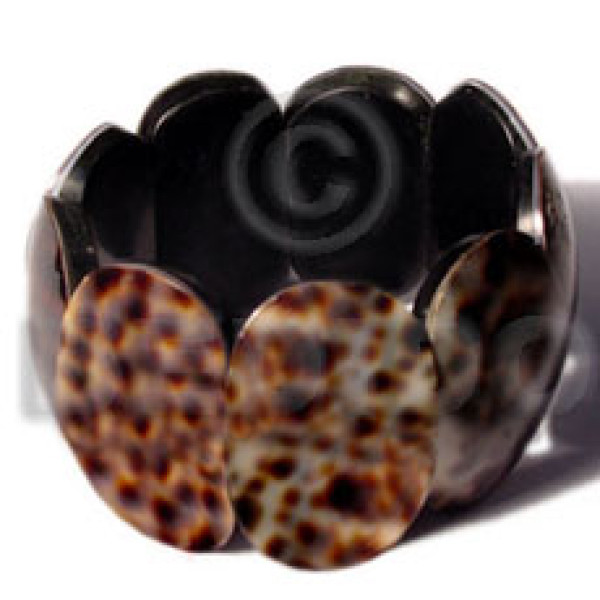 haute hippie 48mmx35mm metal cuff bangle 55mm round laminated brown shell accent..