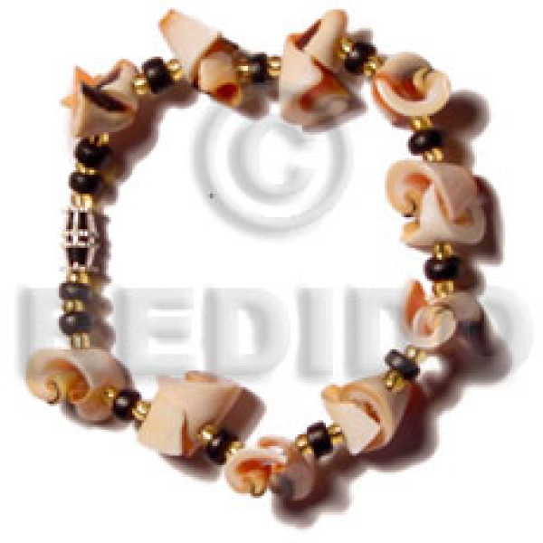 twisted black coco pokalet & rose coloured troca beads gold beads..