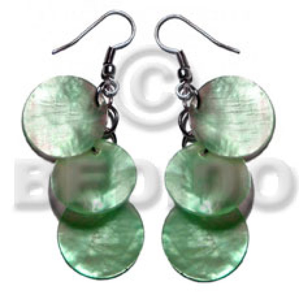 dangling 2 overlapping 25mm laminated capiz i / in royal blue and green combination..