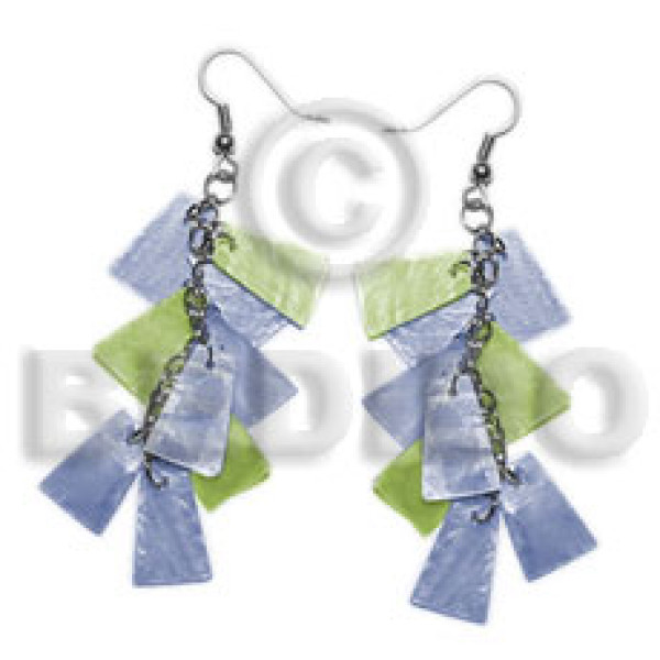 dangling subdued blue/green 20mmx15mm capiz /9pcs. in metal chain..
