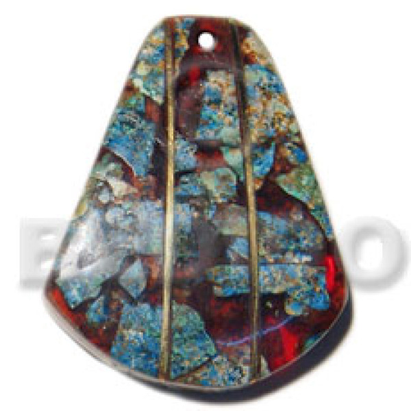 dangling 20mm rouunded back to back heart shell / blue tones..
