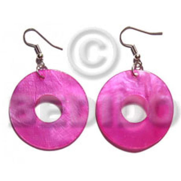 dangling 30mm round laminated golden amber kabibe shell rings in high gloss wood beads accent..