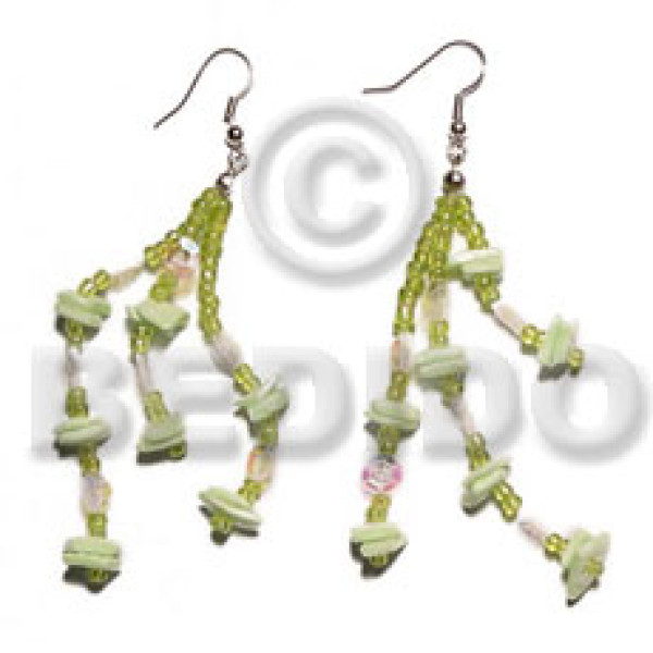 dangling double round 25mm green capiz shell 15mm capiz blue flower..