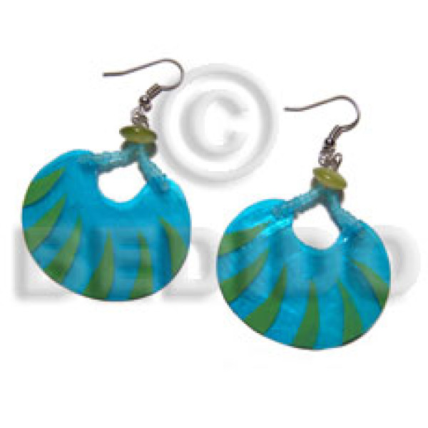 dangling 40mmx30mm laminated capiz / aqua blue and lime green tones..