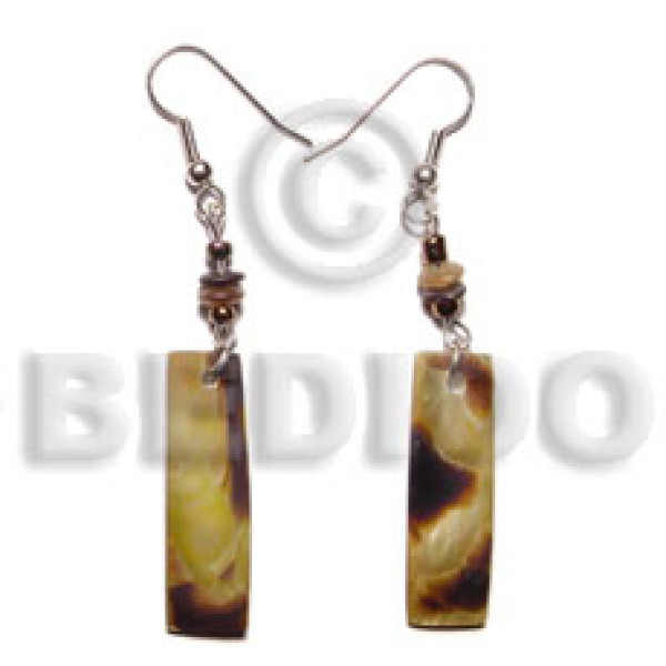 (duplicate 5030er) dangling 30x10mm brownlip bar horn bead accent earrings..