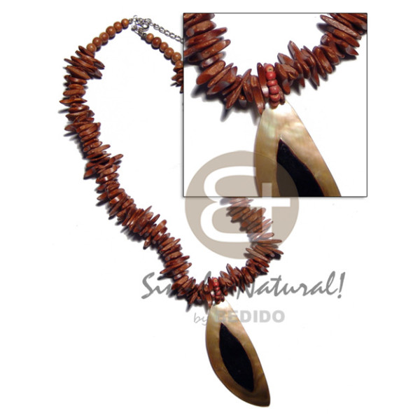 20mm round two toned capiz shells in black crisscross wax cord wood beads..