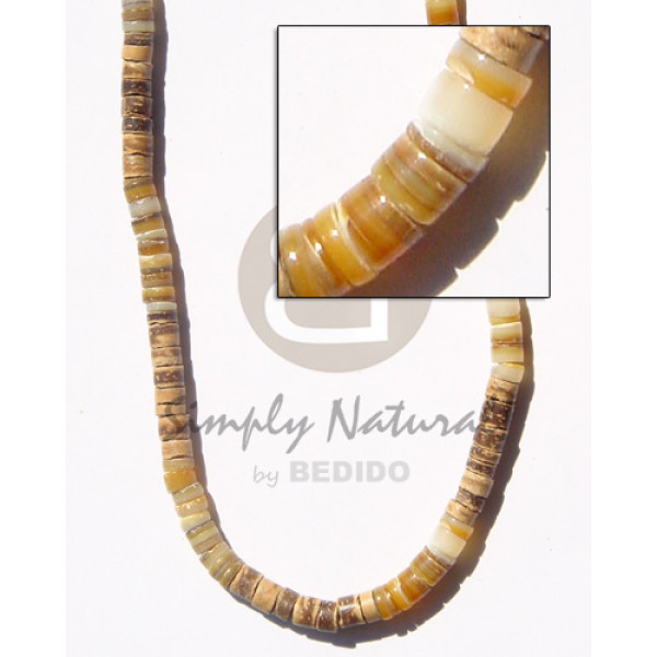 3 layer black 2-3mm coco heishe blacklip shell tusks & wood beads accent..