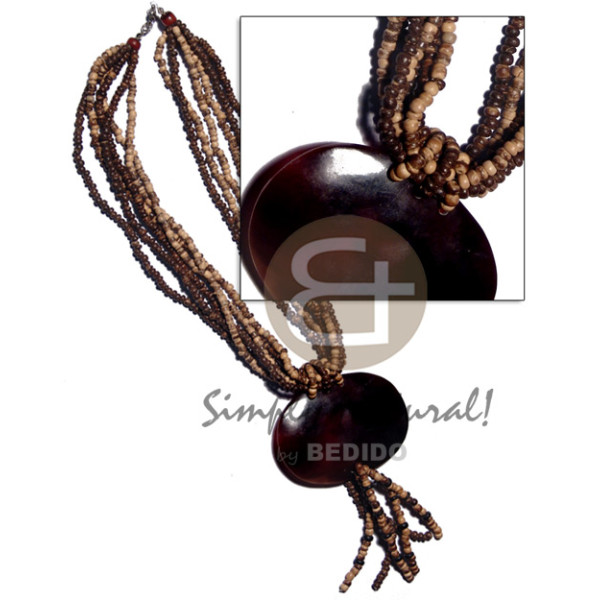tassled 6 layers nat. brown & tiger 2-3mm coco pokalet 60mmx40mm oval black tab shell..