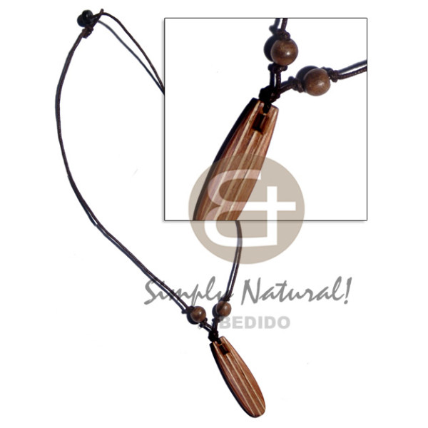 4 rows of wax cord textured and marbled freeform shape wood pendant 20mm MOP ring accent/ 18in..
