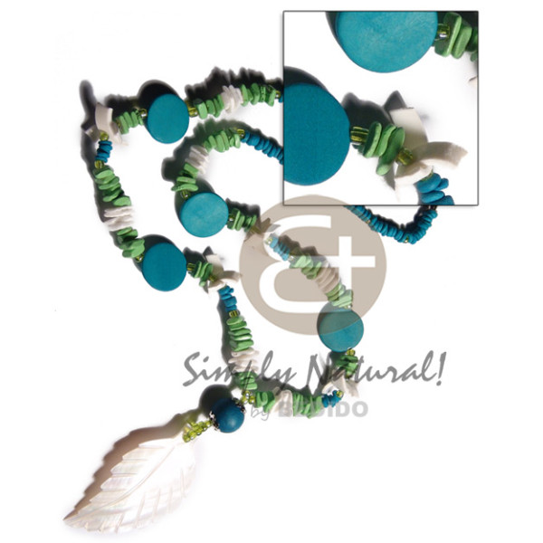 coco square cut and 4-5mm coco Pokalet in blue green/lime green tones white rose shell and 20mm fl..