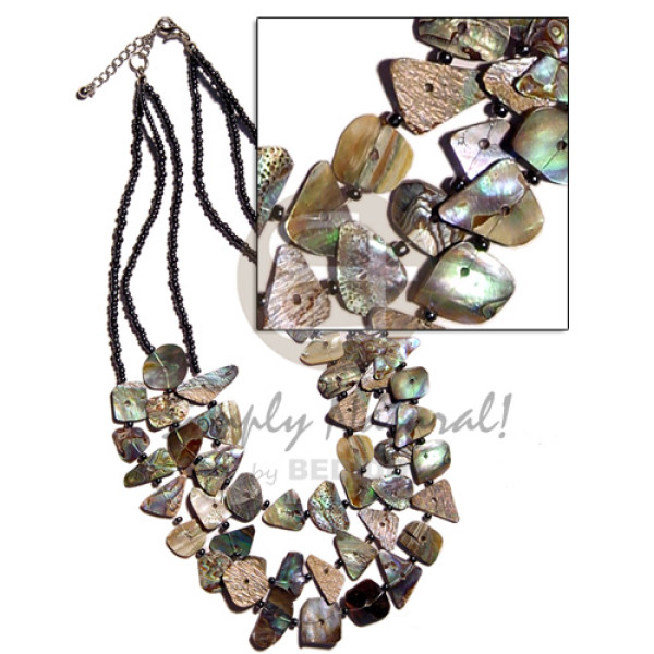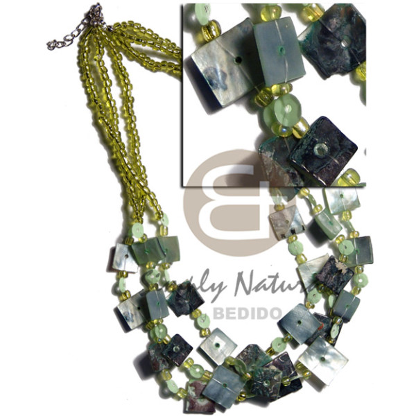 25mm neon green capiz shells in graduated layer 18"/16" ( 16 pcs.) sequins accent and matching glas..
