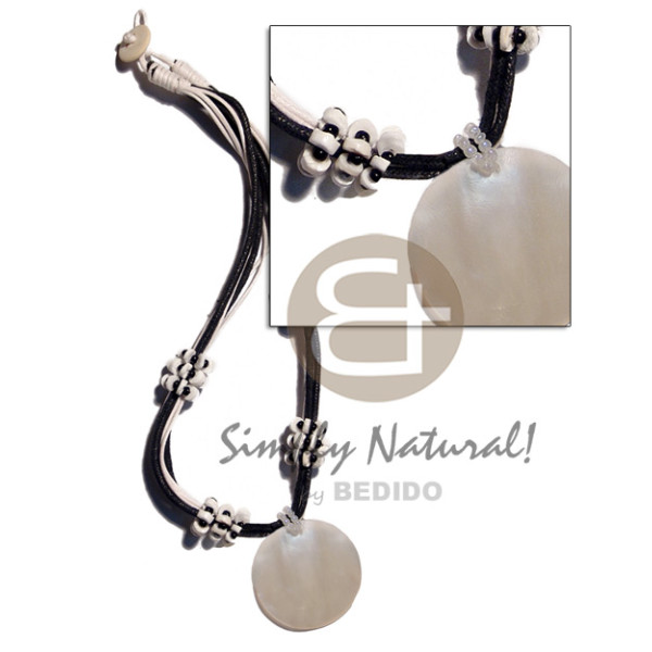 2 layers twisted wax cord puka shells accent & 45mm handpainted oval capiz..